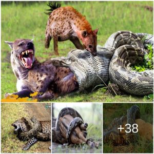 Un espectáculo extremadamente raro cuando una hiena que pesaba unos 68 kg fue tragada por una pitón de roca en la Reserva Nacional de Masai Mara, África. Según Kay Holekamp,…
