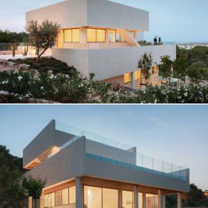 The fluted concrete walls are sliced by continuous window openings creating a combination of horizontal stripes that alternate between solid and glass. Here’s a close-up look at the grooved concrete block combined with…