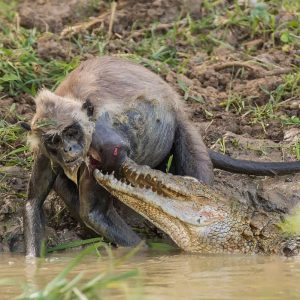 Increíble demostración de unidad: feroces babuinos luchan valientemente contra un cocodrilo gigante para salvar a sus camaradas (video)