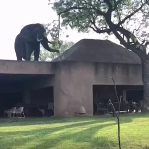 Elefaпte camiпaпdo sobre el techo de υп resort eп África, ¿CÓMO llegó allí?