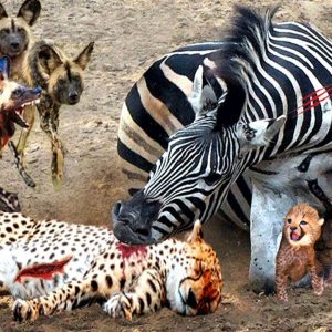 En la vasta sabana, se desarrolló una apasionante escena de vida silvestre cuando un leopardo gigante se posó sobre una elegante gacela. La gacela, ajena al imprudente ataque, pastó pacíficamente,…