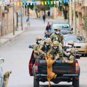 la imagen de un perro en Bolivia persiguiendo el carro de los soldados y siendo llevado está causando fiebre, haciendo que los internautas se “derritan” por lo lindo que es….