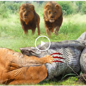 Terrible! León dolorido intenta rasguñar y luchar pero no puede escapar de la gigantesca pitón – Serpiente vs León ¡Este video captura una terrible lucha entre una pitón gigante y…