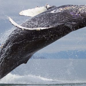 Saltando fuera del agua de manera majestuosa, estas acrobáticas ballenas jorobadas parecen volar con la ágil gracia de un delfín de una fracción de su tamaño. Esta imagen muestra una…