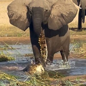 ¡Increíble hazaña! Elefantes defienden a sus hermanos dominando a cocodrilos con sus colmillos Prepara tus sentidos para presenciar un espectáculo impresionante de la naturaleza. Los elefantes, con su fuerza y valentía, demuestran su poderío al enfrentarse a los temibles cocodrilos para proteger a sus seres queridos. En una increíble muestra de habilidad y determinación, utilizan sus imponentes colmillos para dominar a estos feroces depredadores acuáticos. Acompáñanos en este asombroso encuentro entre dos gigantes de la fauna salvaje y déjate maravillar por la increíble defensa que los elefantes ofrecen a sus hermanos. ¡Prepárate para ser testigo de una lucha épica y una lección de coraje animal!