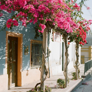 Pink bougainvilleas and flowers will beautify your pergola.