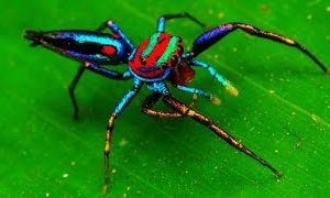 Esta diminuta araña de colores tiene un tamaño de 0,3 cm con una longitud de 0,75 cm. Las arañas son de color rosa, azul, morado, rojo y naranja. Un fotógrafo aficionado…