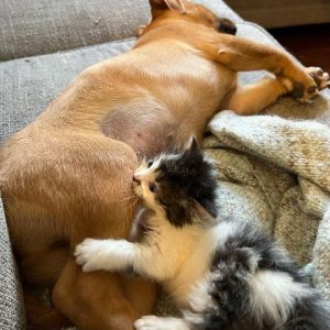 A Feline Discovery: Kitten Adopts Puppy and Makes Him Her Own