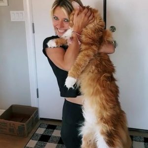 Natalie es la dueña de un enorme gato Maine Coon llamado Finn, que mide 1,3 metros de largo, que es la altura promedio de un niño de nueve años. Muchas…