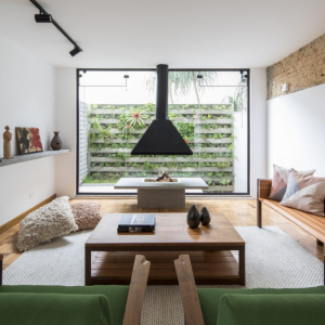 Concrete Eaves House. Mix Brick And Wood. Connecting The Garden With A Warm Atmosphere