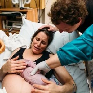 The moment the baby emerged, a gasp rippled through the room. Nestled in the warmth of her mother’s arms, her face was a picture of peaceful repose, framed by a…