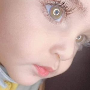 Maravillada por la misteriosa belleza de un bebé de ojos amarillos