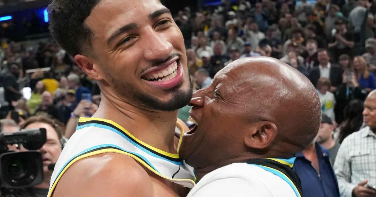 John Haliburton, the father of Pacers star Tyrese Haliburton, got swept up in the emotion, leaving his baseline seat to head to the court, holding up a towel featuring his son’s face in front of Bucks star Giannis Antetokounmpo. John Haliburton later apologized on social media.