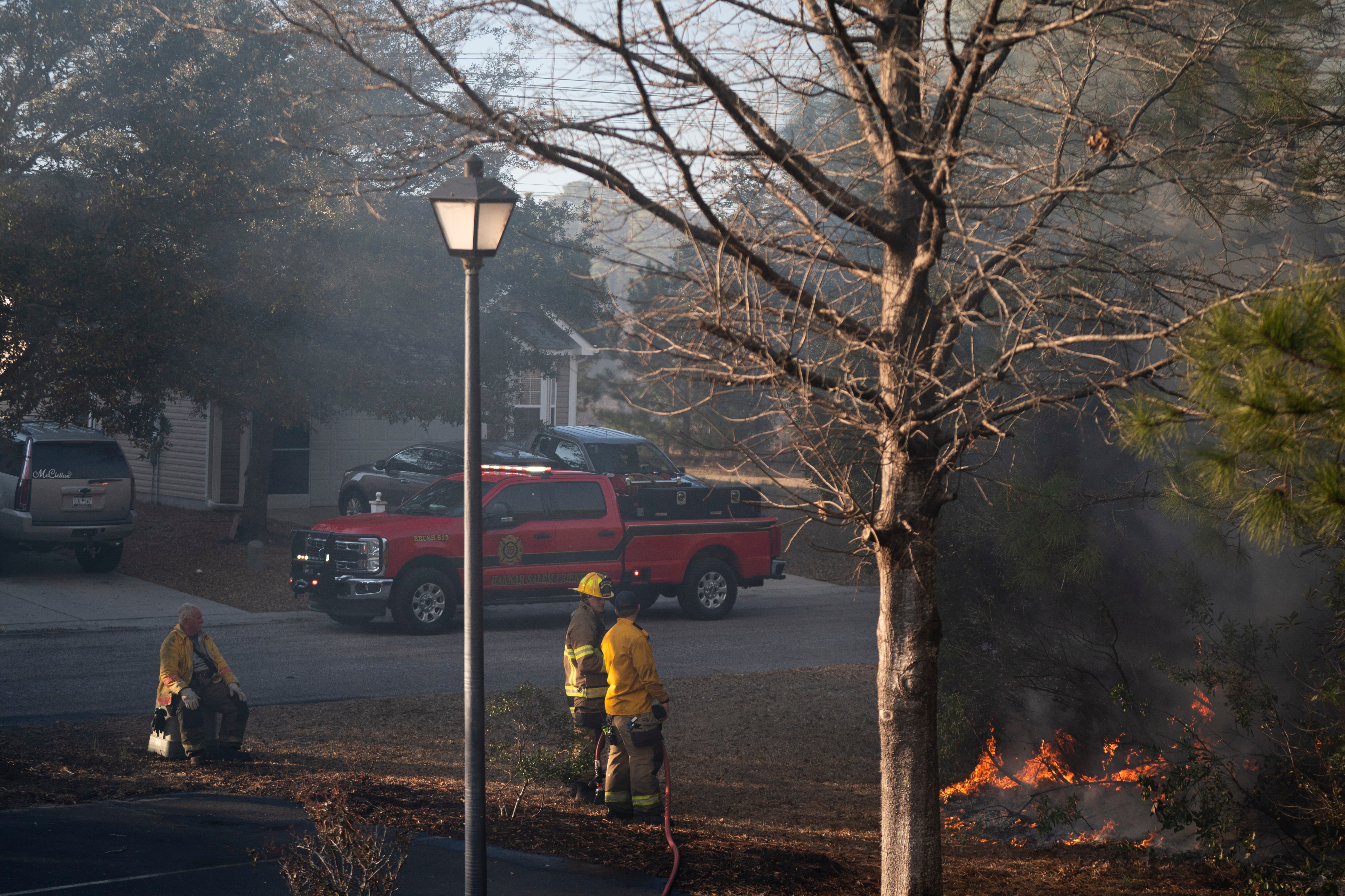 Firefighters attend to a flare-up in the Carolina Forest on Monday. Burn bans were in place in the state (Getty Images)