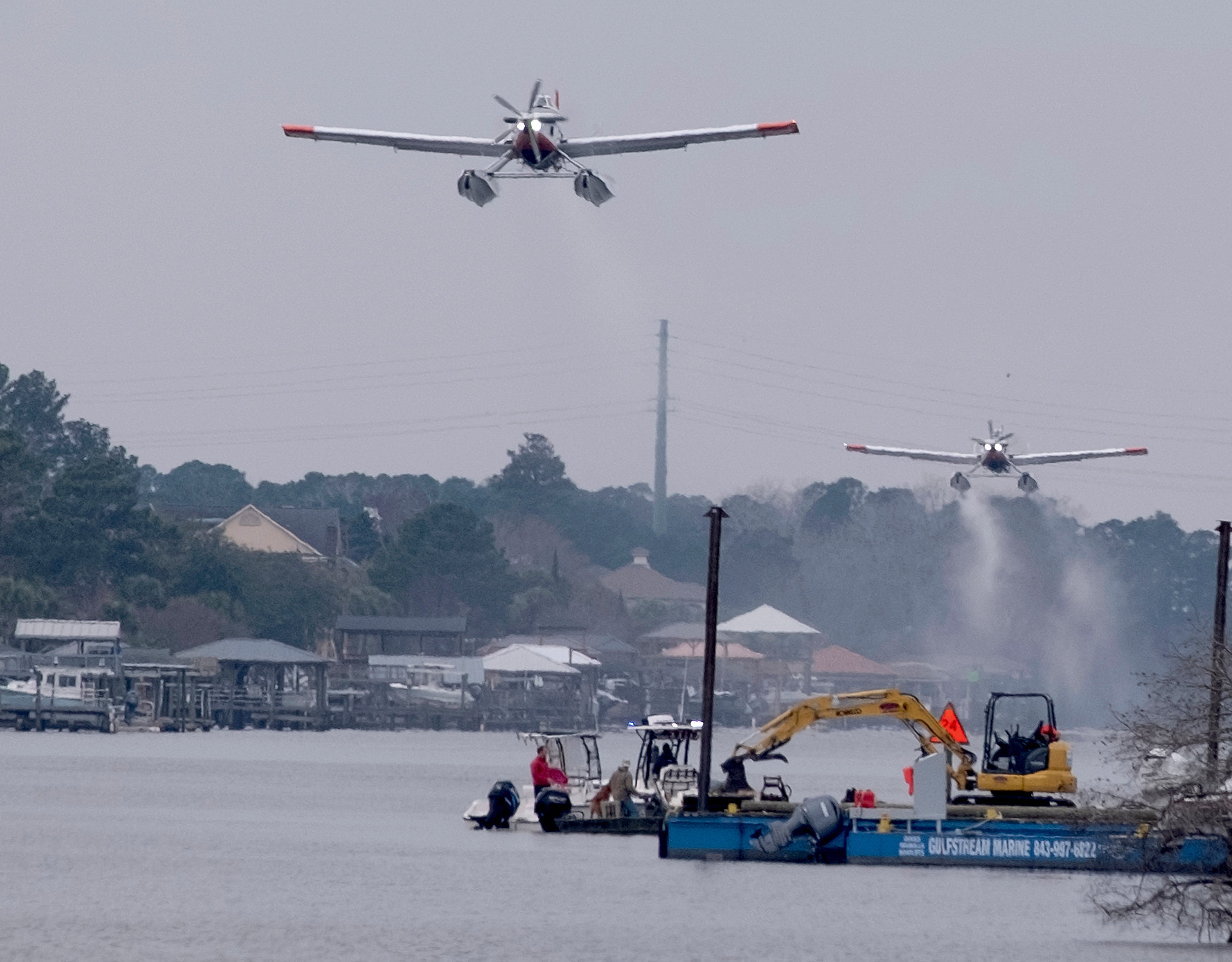 Planes fill bladders with water from the Intracoastal Waterway and empty the water on hot spots of South Carolina’s Carolina Forest wildfire. Fire danger was elevated for the Carolinas again on Monday (AP)