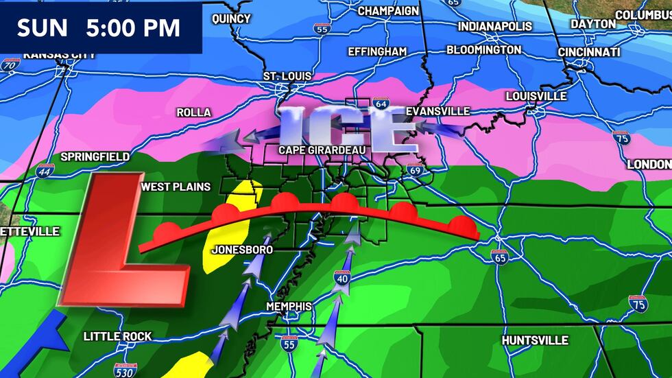 Models continue to show a very wet system coming in from the west with a very strong warm punch from the south on Sunday. Areas to the south will likely end up with mainly rain. North, however, it may stay at or below freezing with significant amounts of snow, sleet and freezing rain possible.(Source: KFVS)