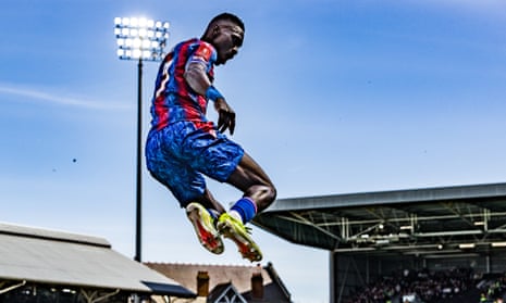 Crystal Palace’s Eddie Nketiah celebrates scoring their side’s third goal of the game. Photograph: John Walton/PA