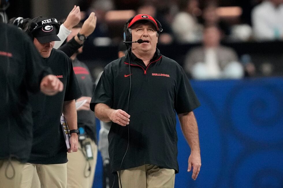 Georgia’s Kirby Smart coached the Bulldogs against Notre Dame on Jan. 2 in the postponed Allstate Sugar Bowl while his father was hospitalized with a hip fracture sustained when he fell in New Orleans on Dec. 31. Sonny Smart died Jan. 4 from complications following hip surgery. (AP Photo/Gerald Herbert)(Gerald Herbert | AP)