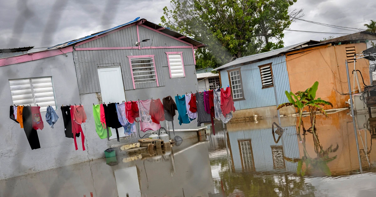 A house is seen partially flooded as Hurricane Erin leaves the region in Guayama, Puerto Rico on Sunday.Ricardo Arduengo / AFP via Getty Images