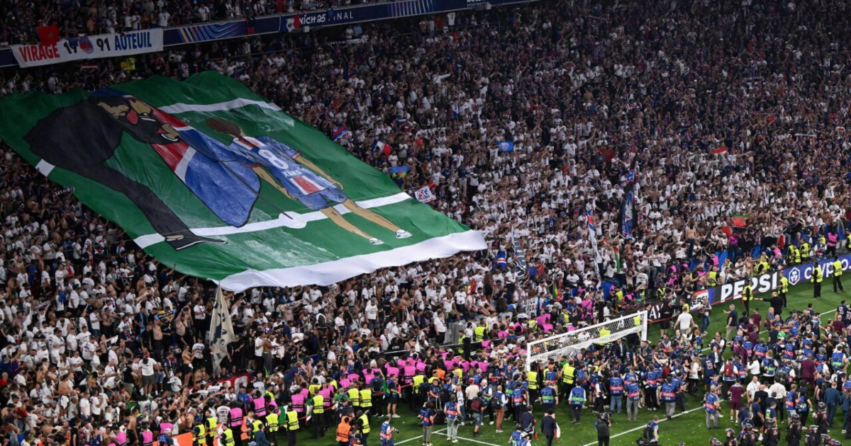 Cette scène, les supporters parisiens l’ont préparée pour le coach qui les a menés à la victoire. À la fin du match, ils ont déployé une immense bâche où était dessinée la fille de Luis Enrique, de dos, vêtue d’un maillot parisien, décalque de la scène du sacre du Barça en 2015.