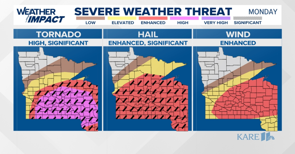 GOLDEN VALLEY, Minn. — Strong storms are expected Monday afternoon with a moderate risk for severe weather, including tornadoes. Here are the latest live updates: