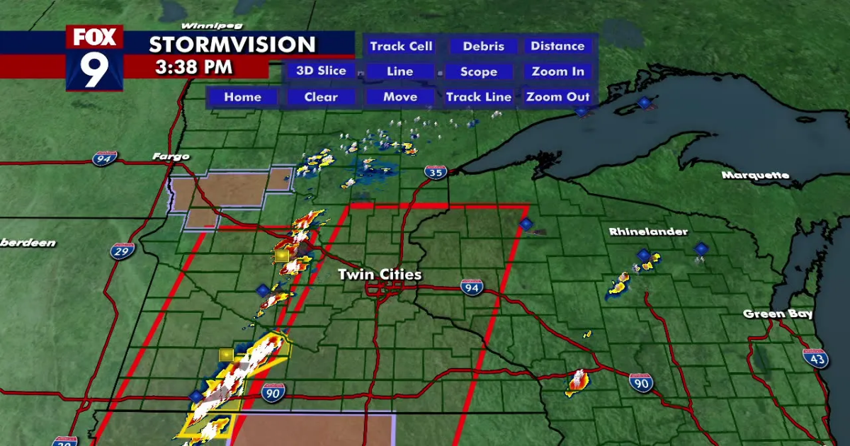 (FOX 9)Tornado warnings and severe thunderstorm warnings are being issued as severe storms move through Minnesota.