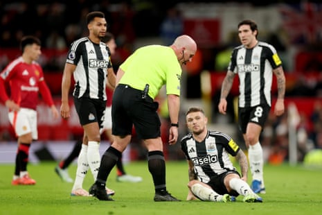 Kieran Trippier of Newcastle United goes down with an injury. Photograph: Carl Recine/Getty Images