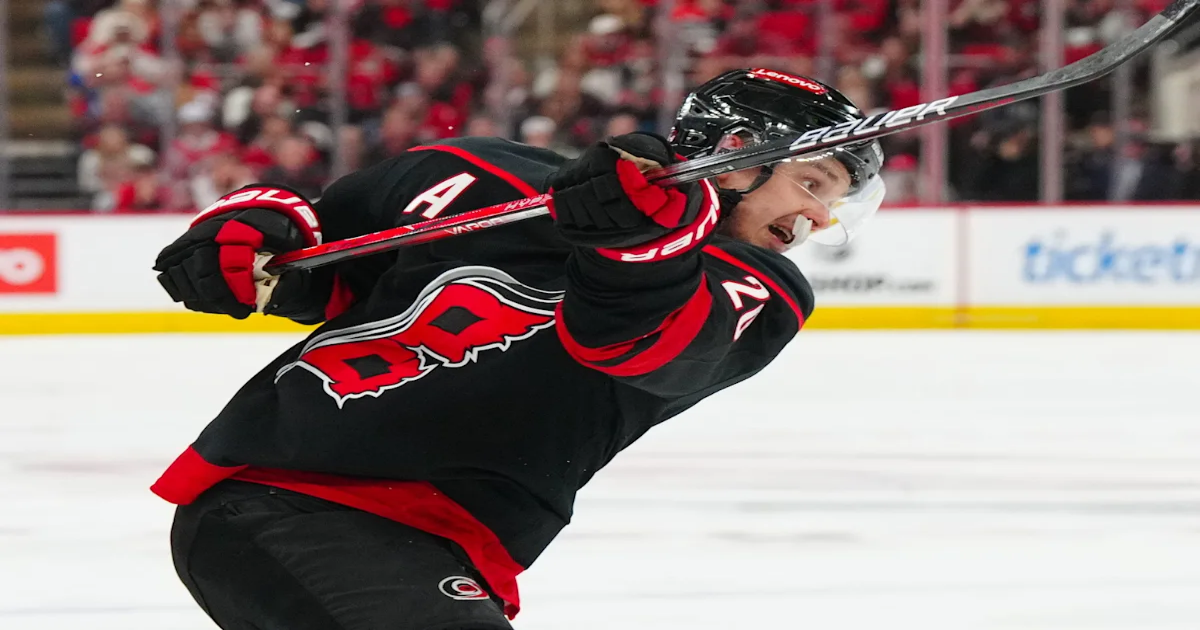 Carolina set up in the offensive zone, passing the puck around to look for the right chance to shoot. When Hurricanes defenseman Shayne Gostisbehere passed the puck to Sebastian Aho, the center took that chance.