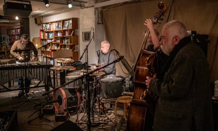 A performance by the late German saxophonist Peter Brotzmann (right) at Oto Cafe in February 2023. Photograph: Dawid Laskowski/The Guardian
