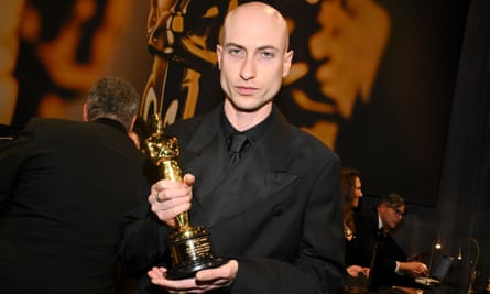 Daniel Blumberg with the Oscar he won for best original score. Photograph: Michael Buckner/Penske Media/Getty Images