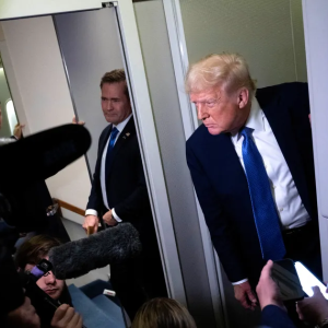 US President Donald Trump speaks to reporters aboard Air Force One while flying to Washington, DC, from Florida, on March 16, 2025, above Virginia. Photo: Brendan Smialowski/AFP/Getty Images In the…