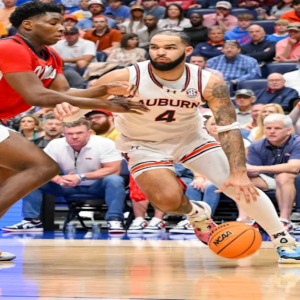 Auburn Tigers forward Johni Broome (4) dribbles past Ole Miss Rebels forward Malik Dia (0) during the first half at Bridgestone Arena. Mandatory Credit: Steve Roberts-Imagn Images NASHVILLE — Ole…