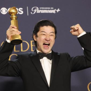 ゴールデン・グローブ賞 助演男優賞に輝き喜ぶ浅野忠信(ロイター) 米アカデミー賞の前哨戦の1つ、第82回ゴールデン・グローブ賞の授賞式が5日(日本時間6日)に米ロサンゼルスで行われ、ドラマ「SHOGUN 将軍」(ディズニープラス)に出演した浅野忠信(51)が、日本人初の助演男優賞(ドラマシリーズ部門)を受賞した。 浅野はタキシード姿で檀上に立つと、トロフィーを手に「ウワォ!」と思わず声を漏らした。そして英語で「多分、皆さんは私のことを知らないと思いますが、私は日本から来た俳優の浅野忠信です。ありがとう、本当にありがとうございます! ワッハッハ」と大喜びしながら自己紹介した。 そして「私は今夜、東京に戻らなければいけない。明日は、また朝から撮影です。これは私にとって、とても大きなプレゼントです。本当に、本当に皆さん、ありがとう。私は、本当に幸せです! ありがとう!」と絶叫した。 ゴーールデングローブ賞では「SHOGUN 将軍」主演の真田広之(63)も、同部門で日本人初の主演男優賞を受賞した。24年9月の第76回エミー賞主演男優賞に続き、日本人初の快挙となったが、ゴーールデングローブ賞では、日本勢が「男優賞2冠」に輝いた