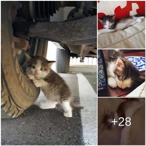 Cuando este buen hombre vio a una gatita asustada aferrada a un camión cerca de su oficina, simplemente no pudo dejarla así. Resulta que, “la mamá gata se fue……