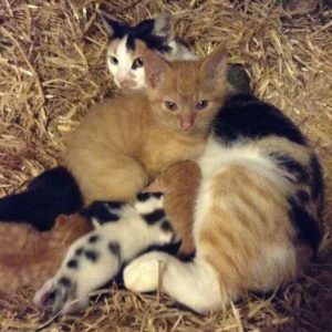 Una mamá gata de granja adoptó a un gatito grande que necesitaba mucho amor maternal. Ella le permitió acurrucarse con su camada de gatitos que eran mucho más pequeños en…