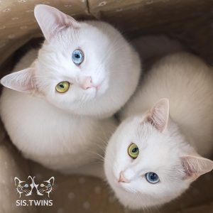 Gemelas Felinas Famosas en Instagram: Presentamos a las Hermanas Gatas con Llamativos Ojos Heterocromáticos Únicos.