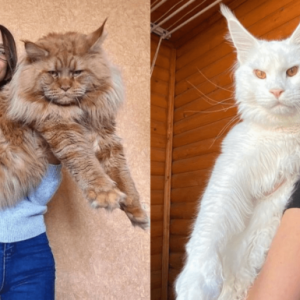 Contempla al majestuoso Maine Coon: felinos gigantes que hacen que tu gato mascota parezca una miniatura en comparación.