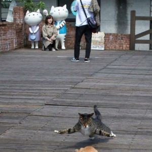 Fotógrafo captura cómicos gatos callejeros en las calles de Tokio.