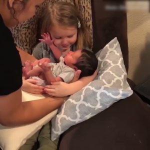 Viral video captures heartwarming first meeting of older sister with newborn, expressing joy to tears.P1 – Newspaper World