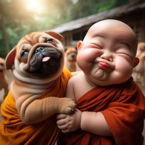 The photo series capturing adorable expressions of a baby monk with pets has garnered thousands of followers.