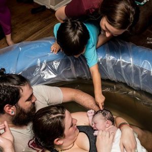 Photos capturing emotional scenes about the journey of a mother giving birth underwater at home with her family.