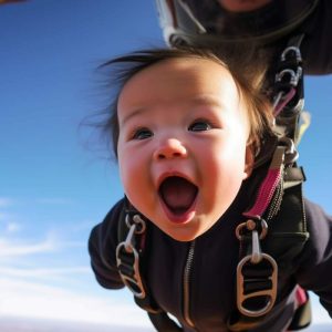 P1.The hilarious expressive reactions of toddlers skydiving with their dads spark heated debates.