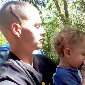 Image of a father tattooing scars similar to his son’s scars on himself so that his son no longer feels lonely.