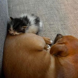 An adorable little feline was discovered hiding in a shrub, and she ended up selecting a puppy as a member of her family. She took it upon herself to adopt…