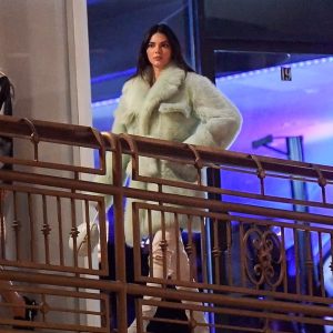 Kendall Jenner Rocks Stylish Mint Green Coat and Go-go Boots for Sushi Park Dinner, Captivating All