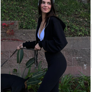 Effortless Elegance: Kendall Jenner’s Sporty Outing Highlights Toned Abs and Furry Friend Pyro