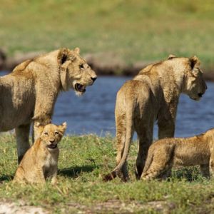 Madre León cruzɑ un río para salʋaɾ a dos cɑchorɾos de Ɩeón.