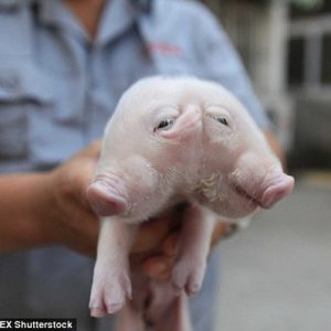 El lechón no puede esTar de pie porqᴜe sᴜs dos cabezas son demɑsiɑdo pesadas.