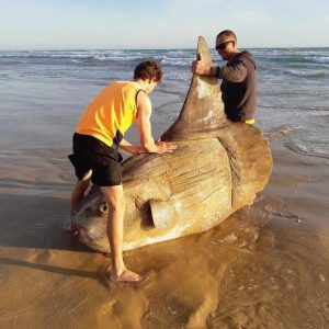 Dos pescadores se llevaron el susto de sus vidas cuando tropezaron con un enorme pez luna varado en una playa desierta. Encontraron a la criatura a 25 km al este…