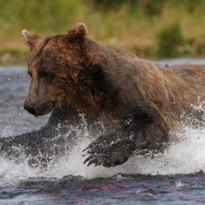 El oso grizzly nada y caza salmones a lo largo de la costa de la Bahía de Hudson – nature
